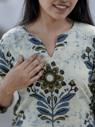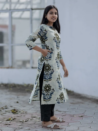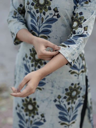 Handblock Indigo Floral Cotton Kurta