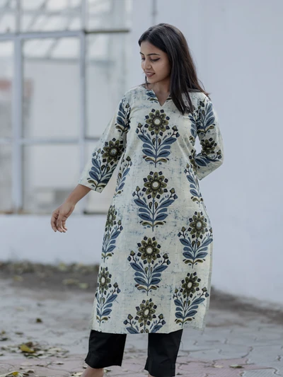 Blue Floral Cotton Kurti