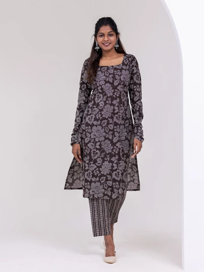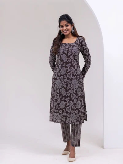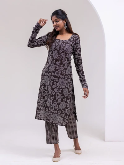 Almost Black Coffee Bloom Kurta Set