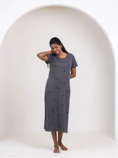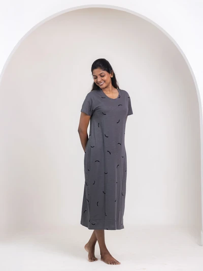 Black Half Moon - Cotton Maternity Lounge Dress
