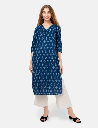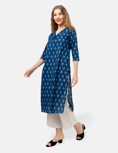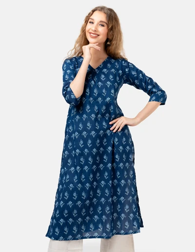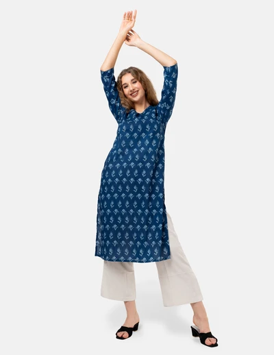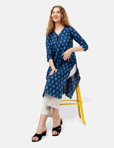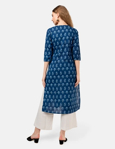Blue White Floral Printed Kurta