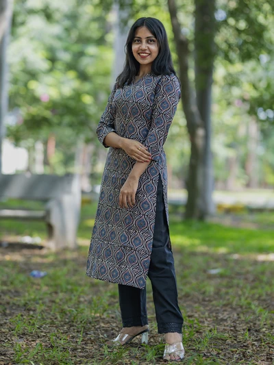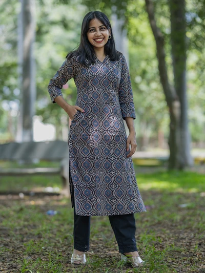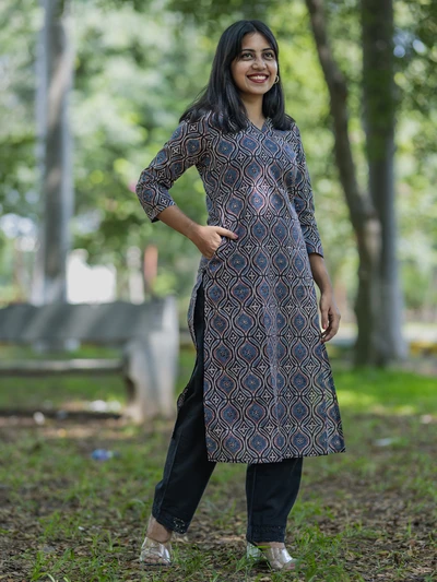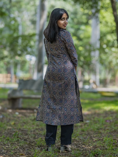 Handblock Indigo Floral Cotton Kurta