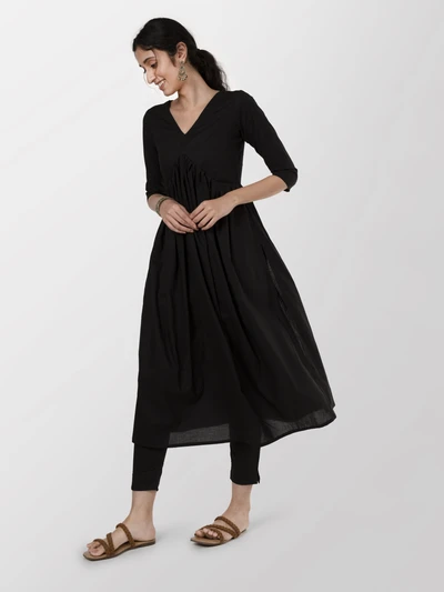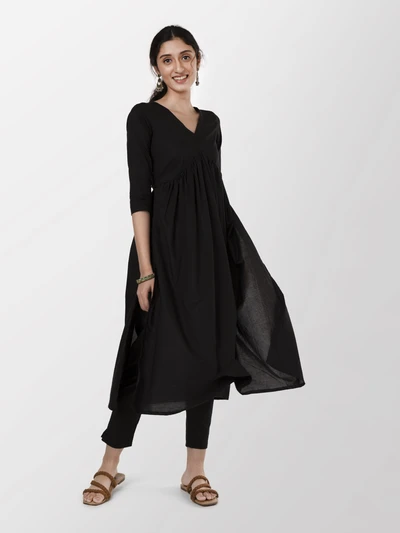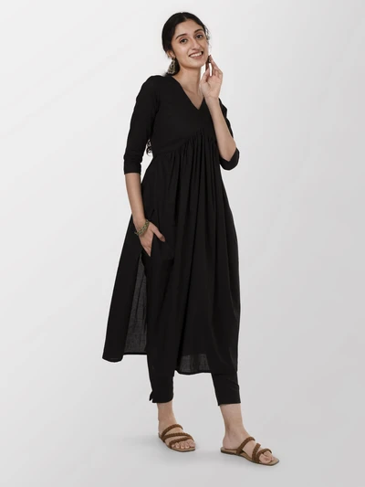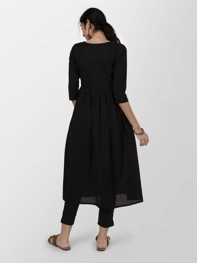 Black Alia-cut Kurta with Trousers