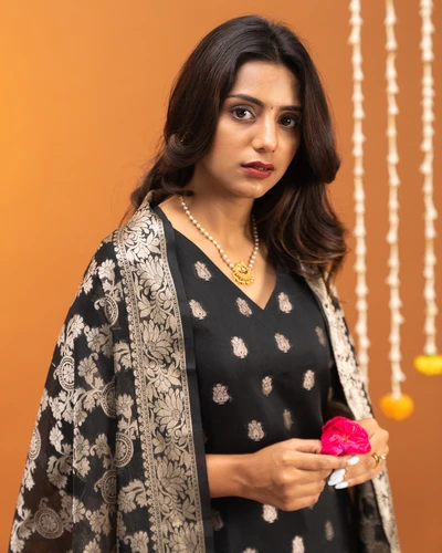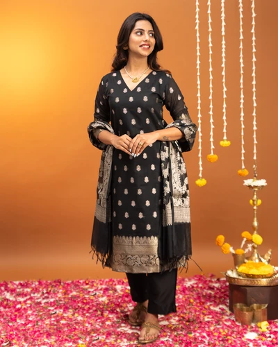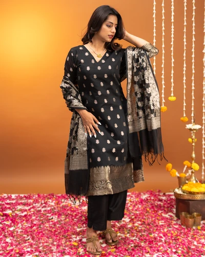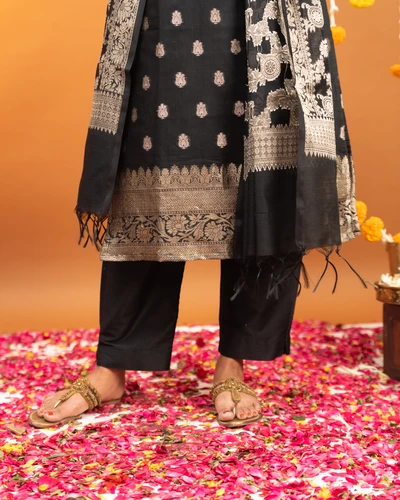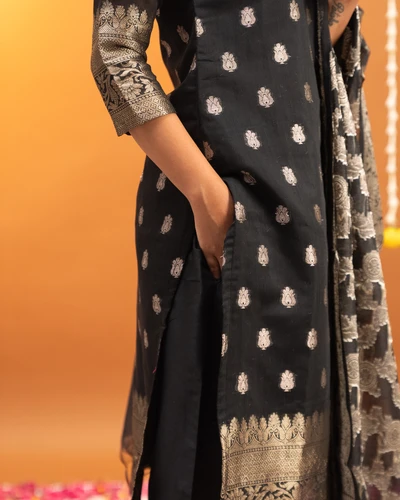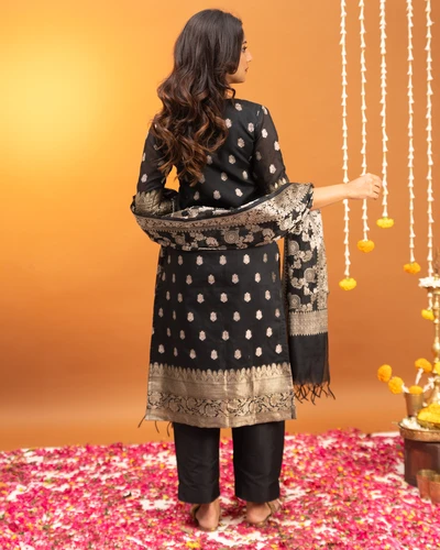 Blue Mangalgiri Handloom Cotton Kurta Set with Dupatta
