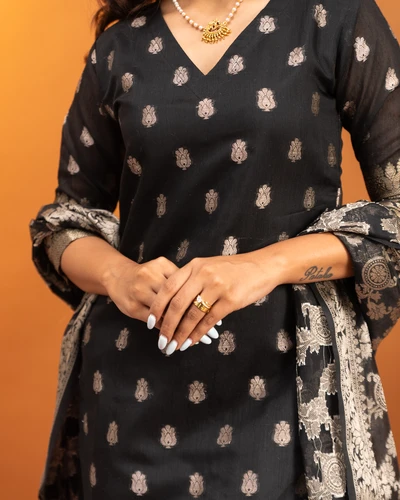 Green Mangalgiri Handloom Cotton Kurta Set with Dupatta