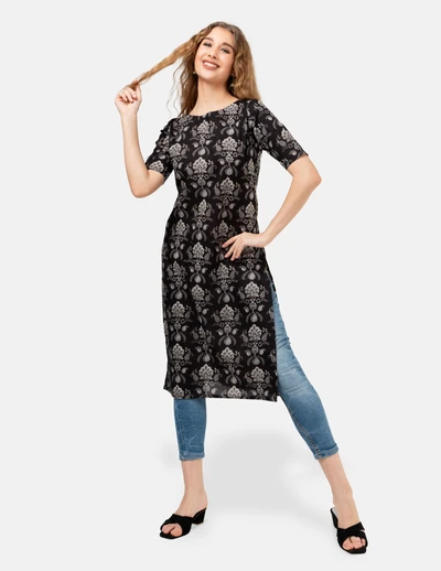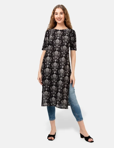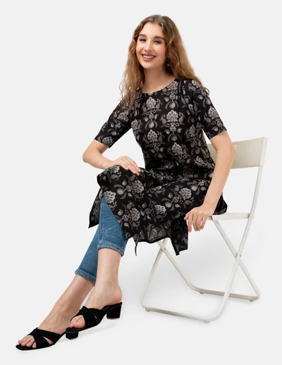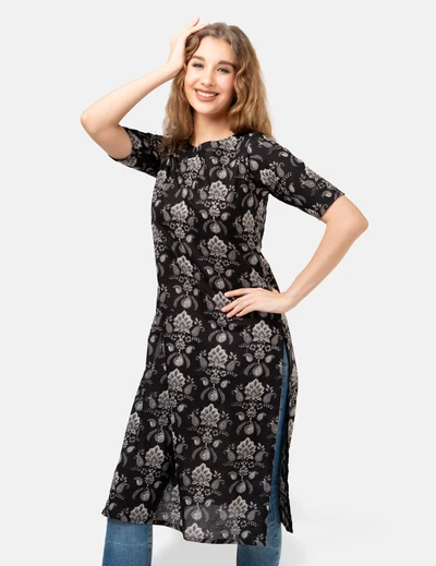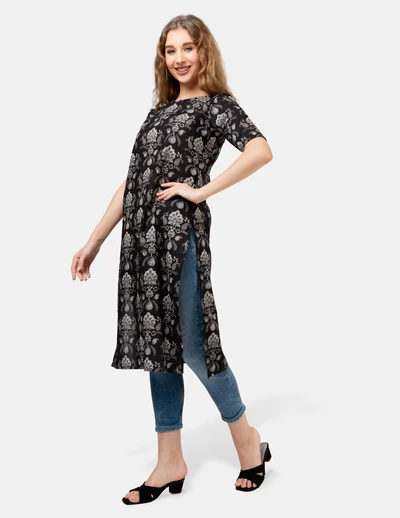 Black Floral Kurta