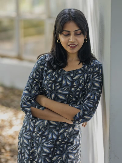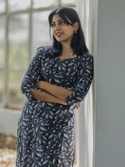 Blue White Floral Printed Kurta