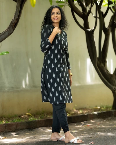 Black Ikkat Kurta