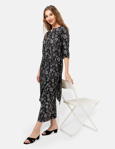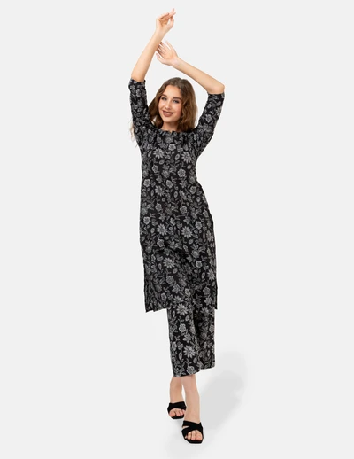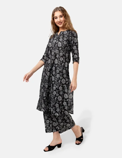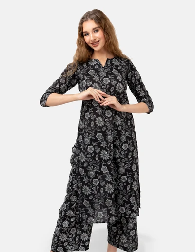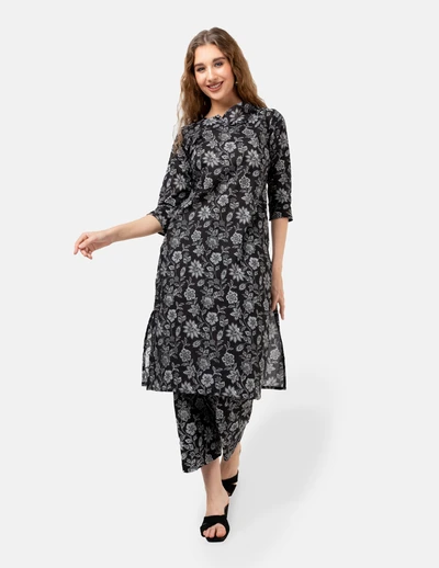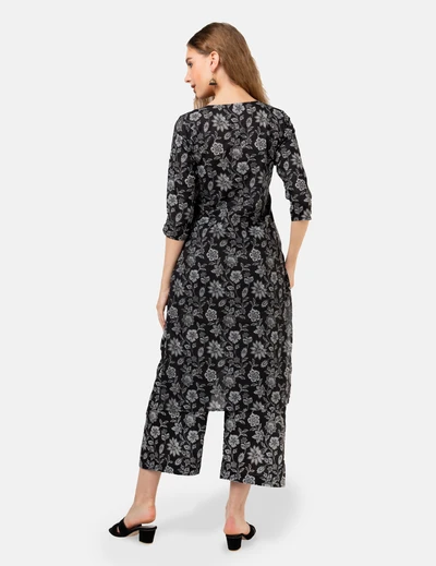 Black with White Floral Kurta Set