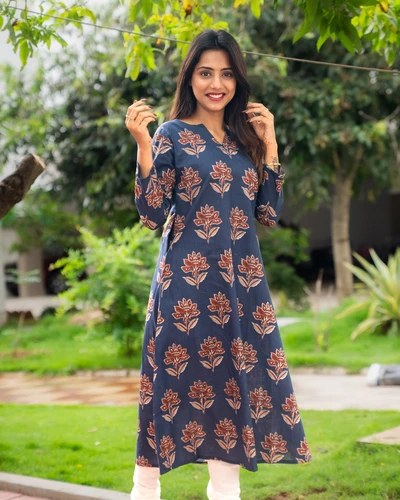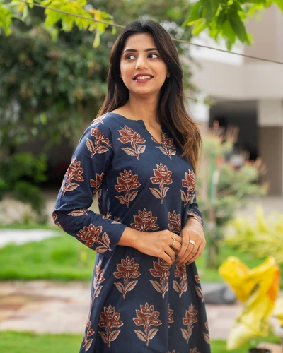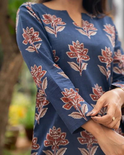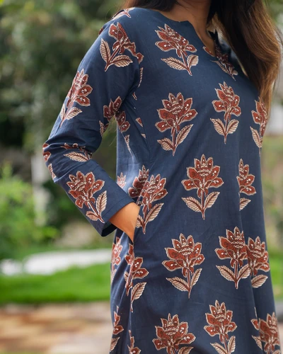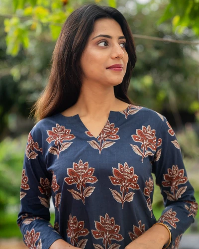Blue Floral Cotton Kurti
