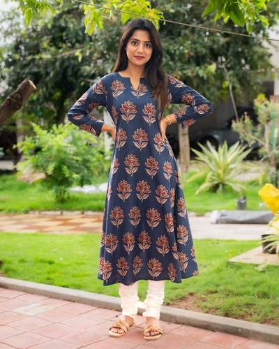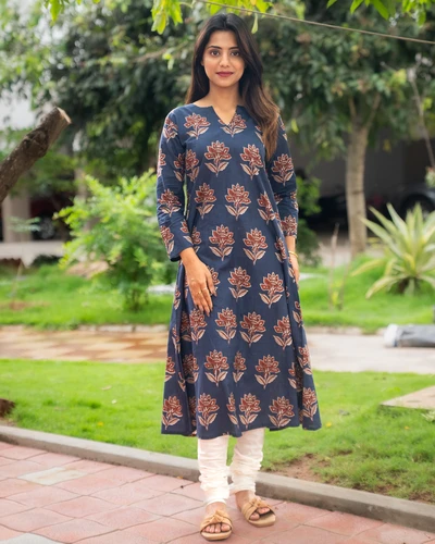 Handblock Indigo Floral Cotton Kurta