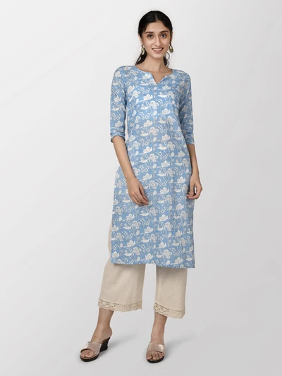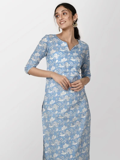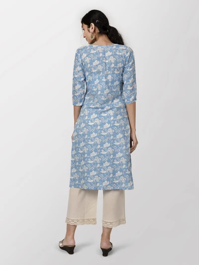 Blue Floral Cotton Kurti