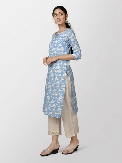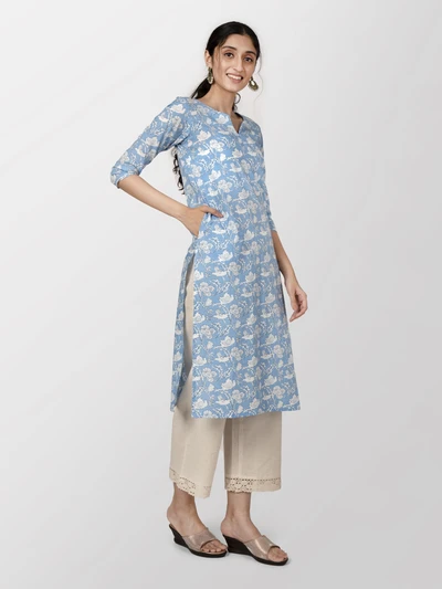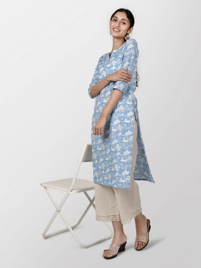 Blue Floral Cotton Kurta