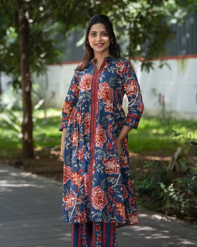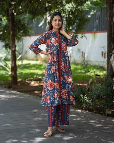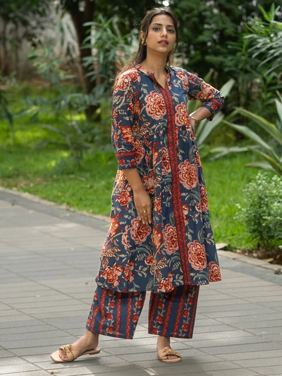Blue Floral Kurta Set