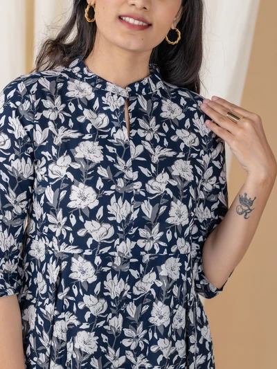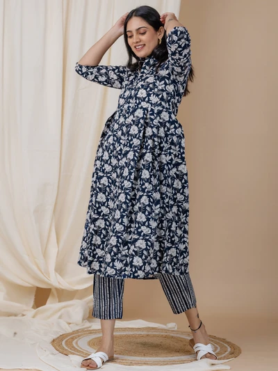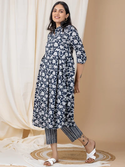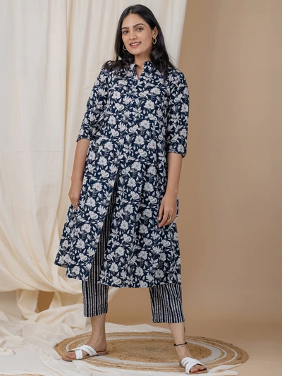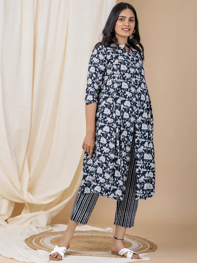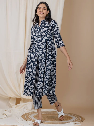 Blue Mangalgiri Handloom Cotton Kurta Set with Dupatta