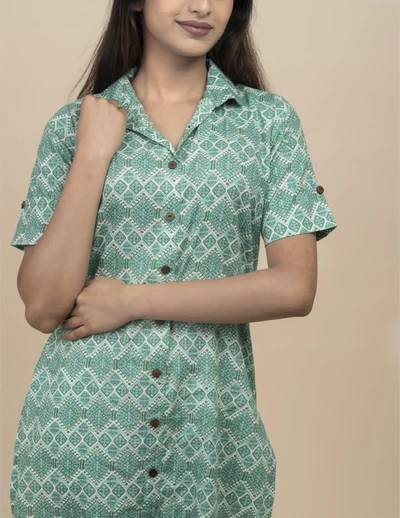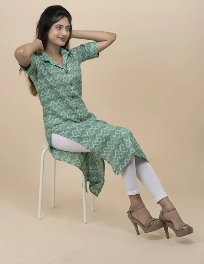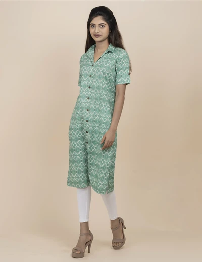 Blue Green Pattern Kurta