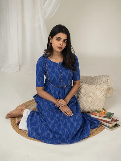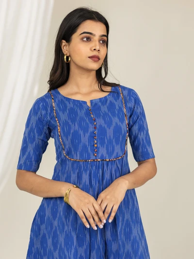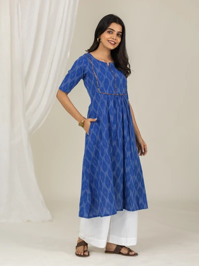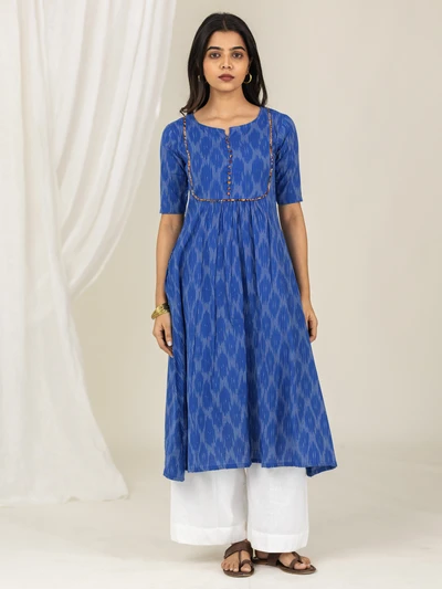 Blue Ikkat Flared Kurta