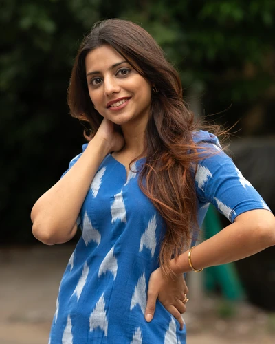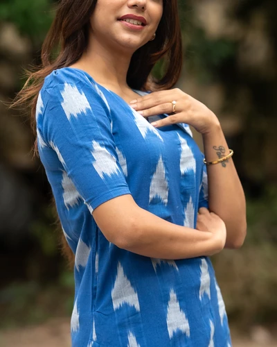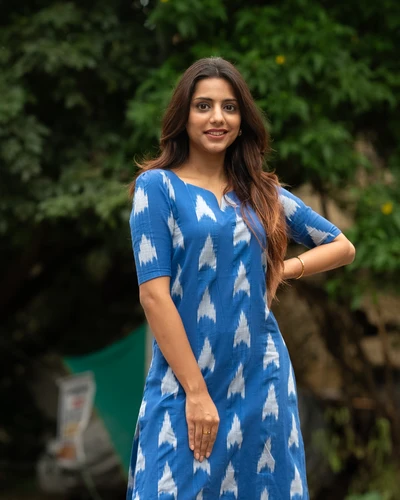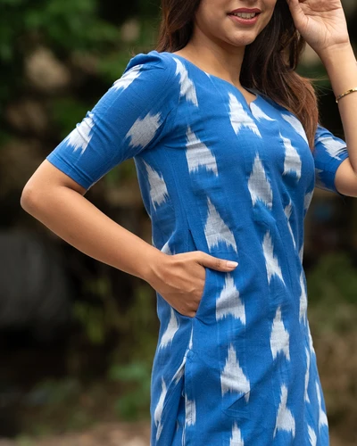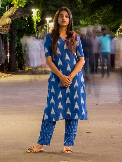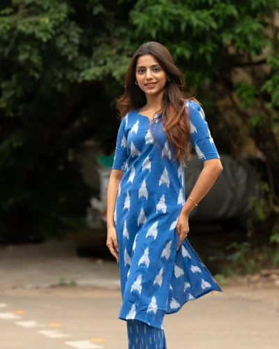 Blue Mangalgiri Handloom Cotton Kurta Set with Dupatta