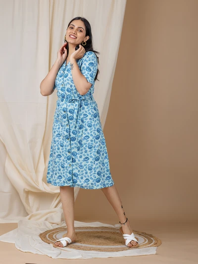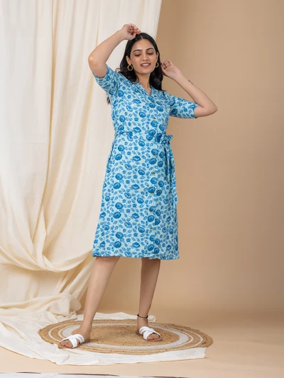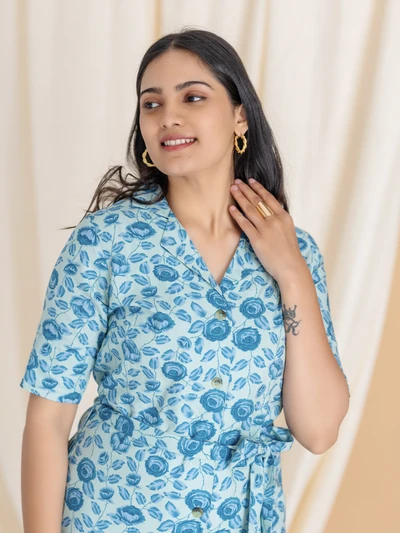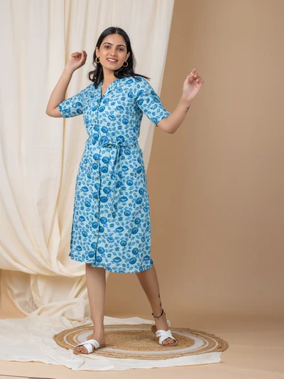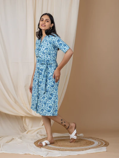 Blue Rose Shirt Dress