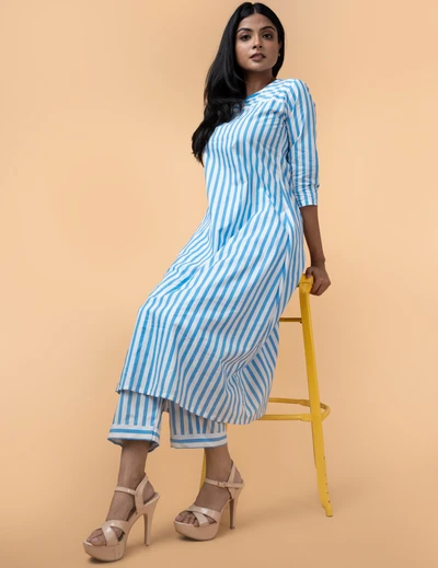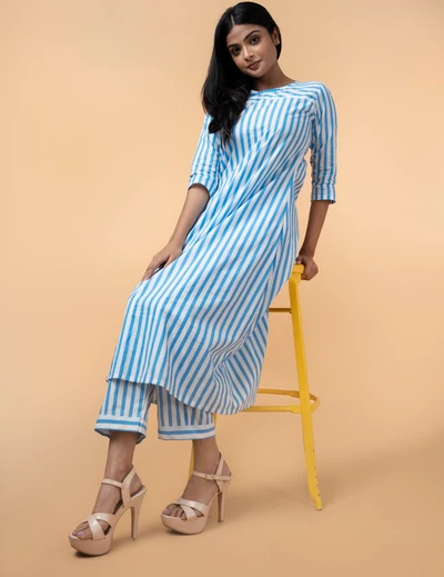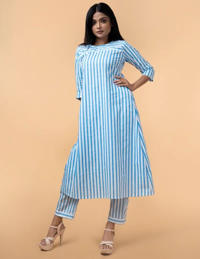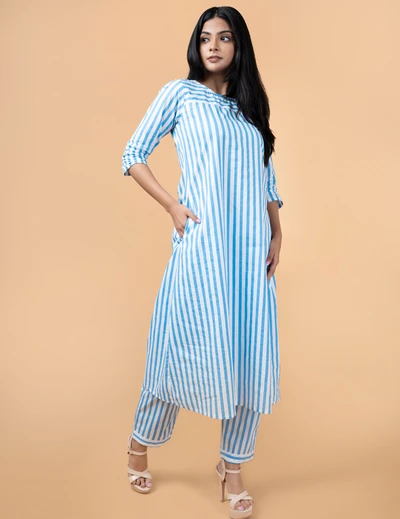 Blue Mangalgiri Handloom Cotton Kurta Set with Dupatta