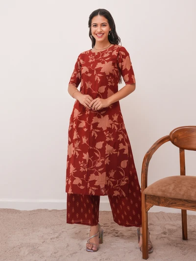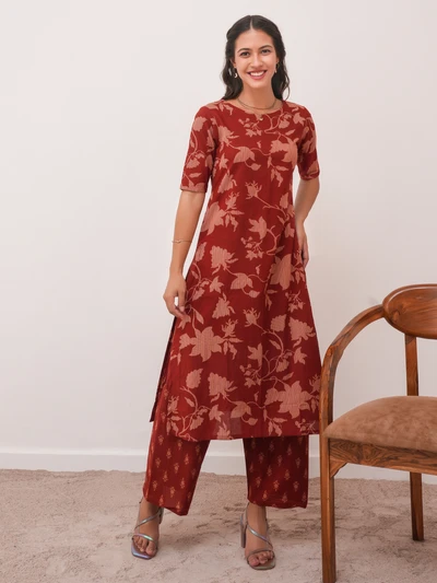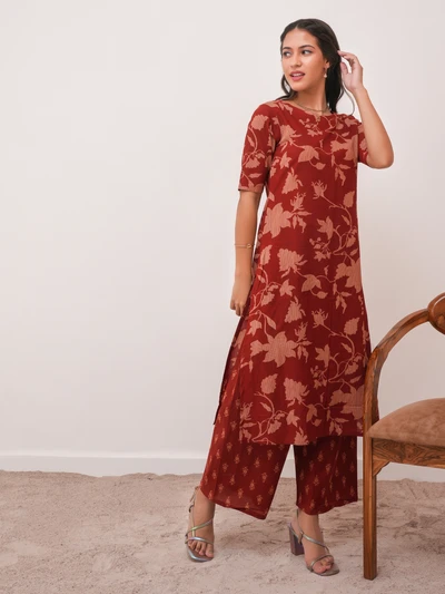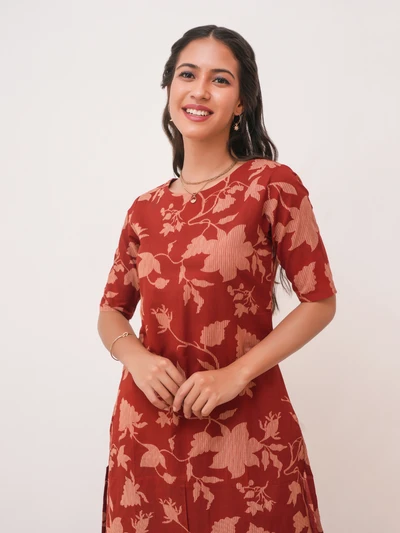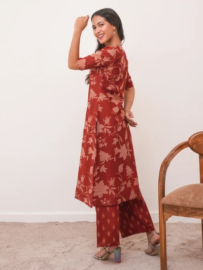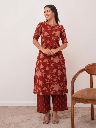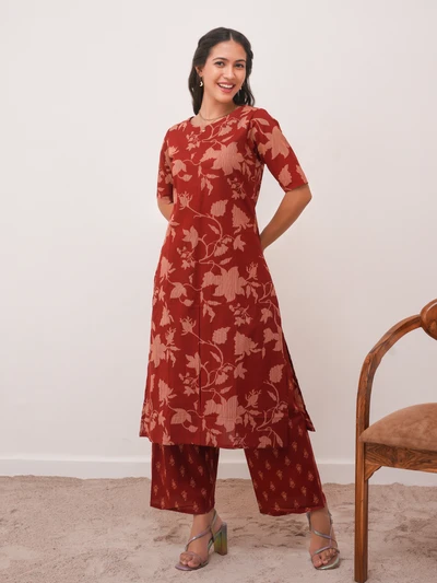 Brick Red Cotton Kurta with Pant Set