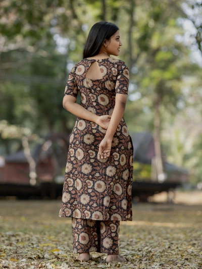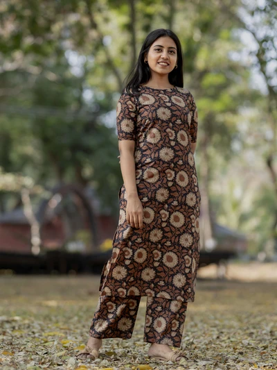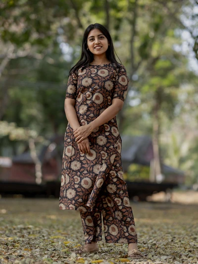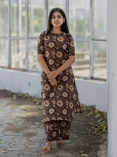 Blue Mangalgiri Handloom Cotton Kurta Set with Dupatta
