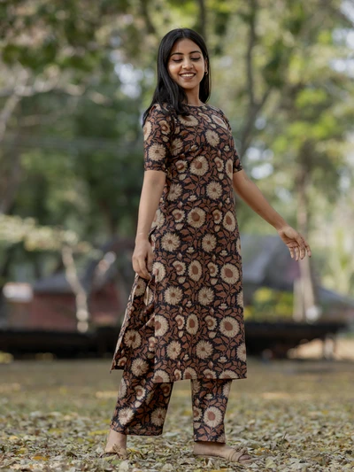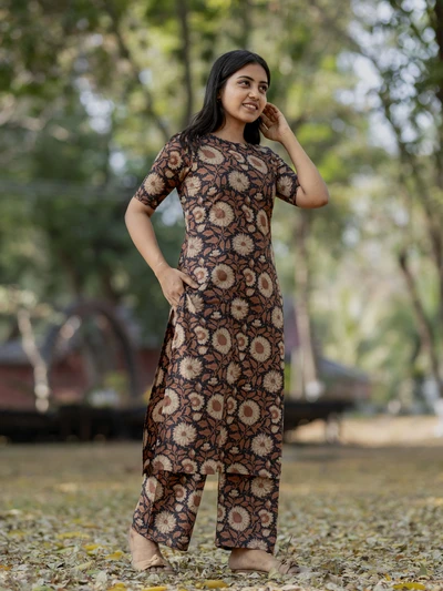 Beige Mangalgiri Handloom Cotton Kurta Set with Dupatta