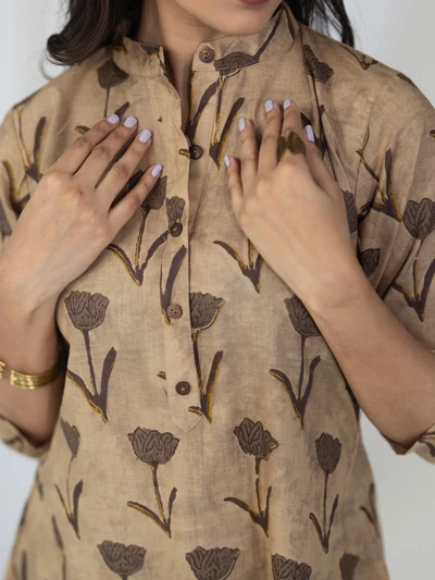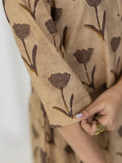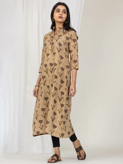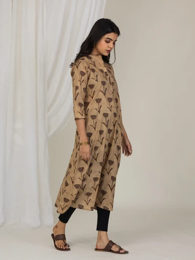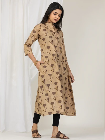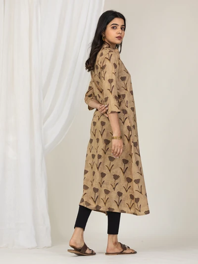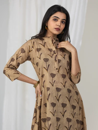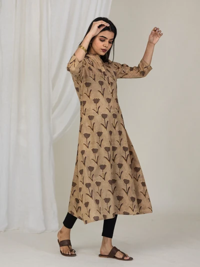 Brown Rose Cotton A-line Kurta