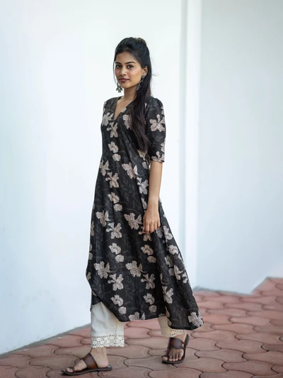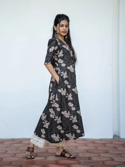 Handblock Indigo Floral Cotton Kurta