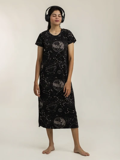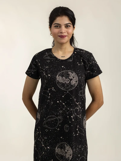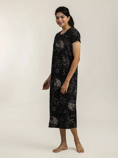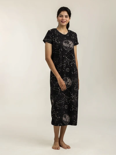 Cosmic Soft Cotton Evening Dress For Women