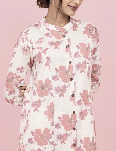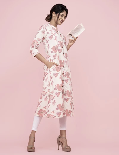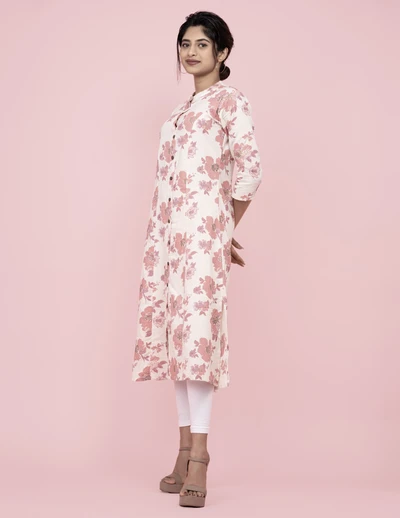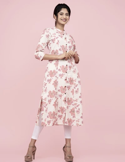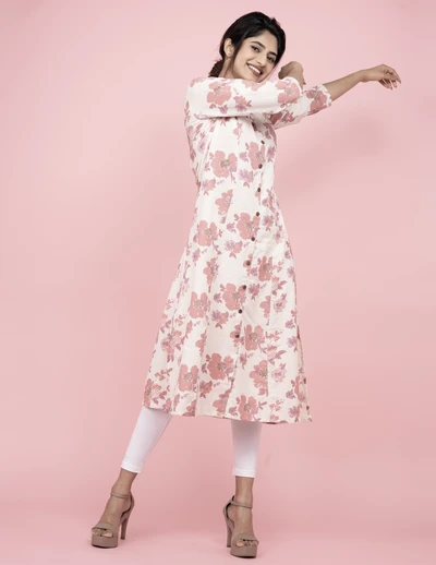 Cream Floral A-line Kurta