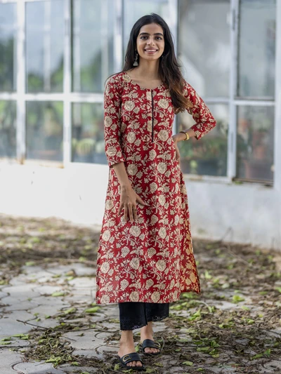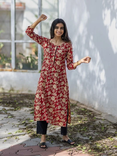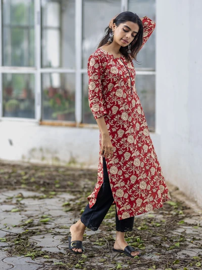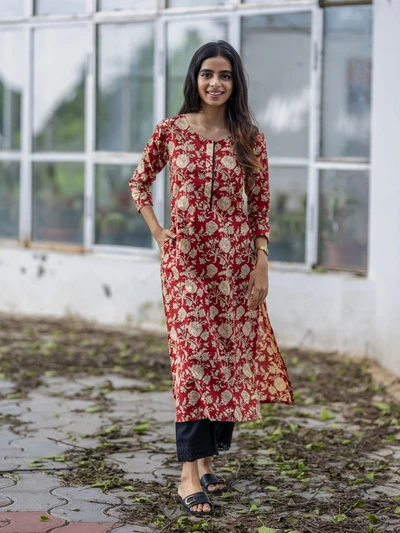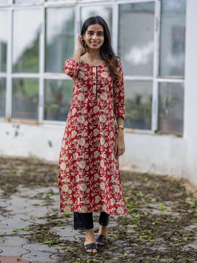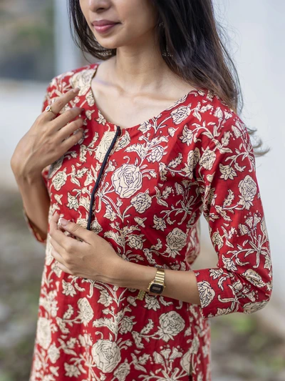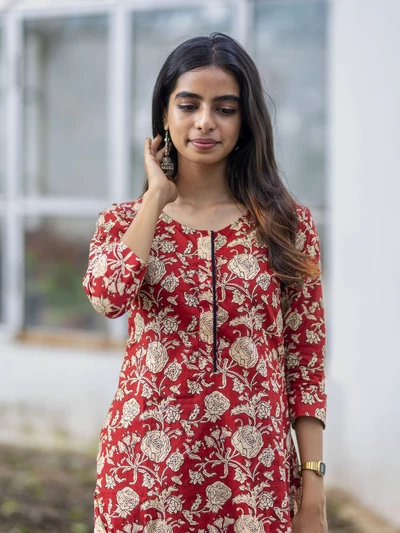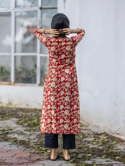 Crisp Red Floral Cotton Kurta