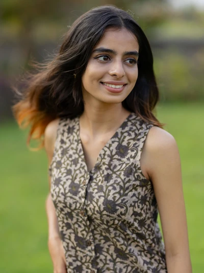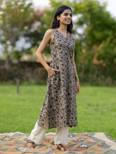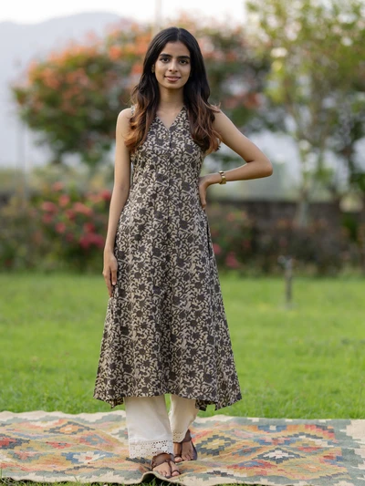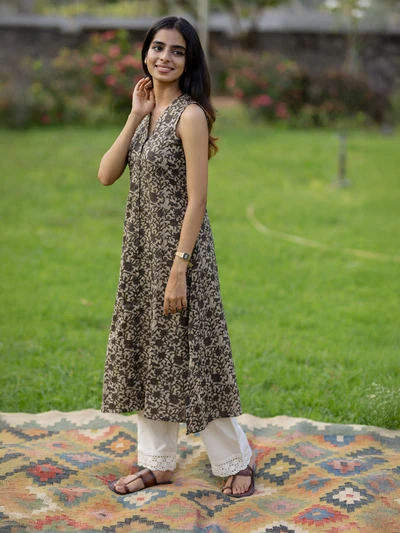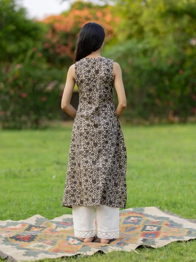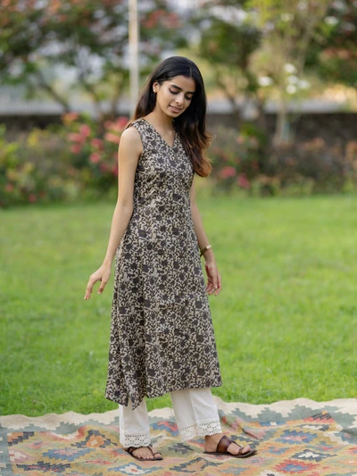Earthy Garden Flared Sleeveless Kurta