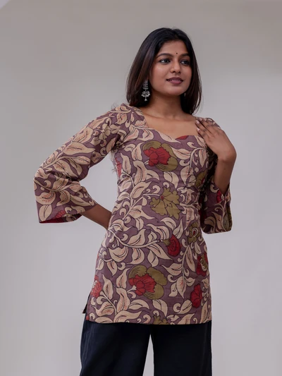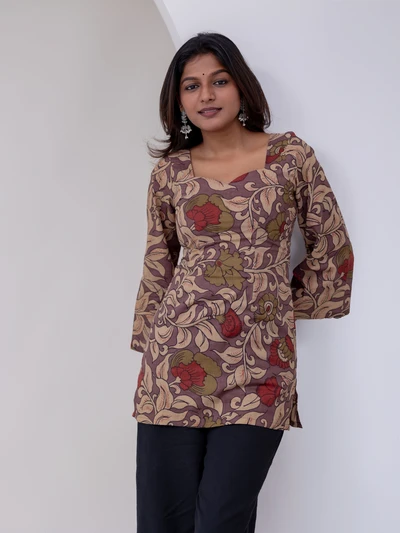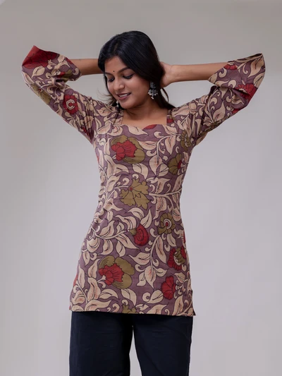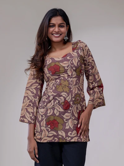 Floral Kalamkari Printed Short Top