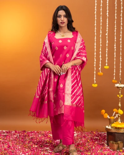 Beige Mangalgiri Handloom Cotton Kurta Set with Dupatta