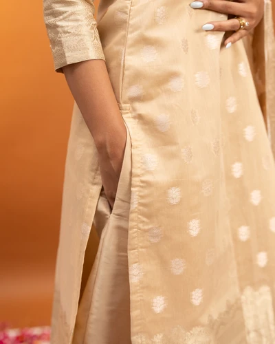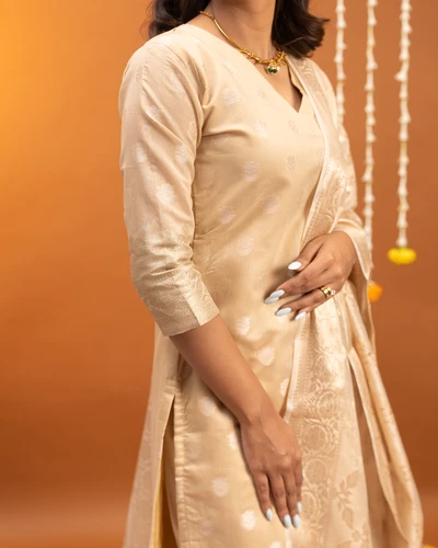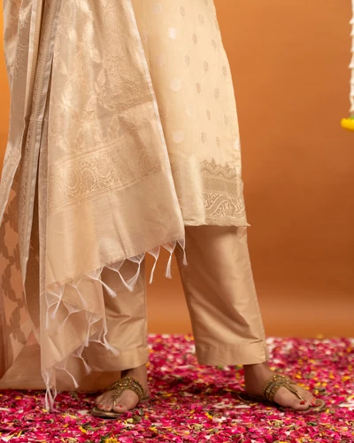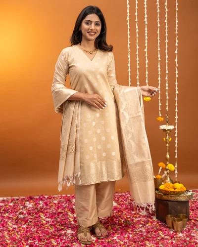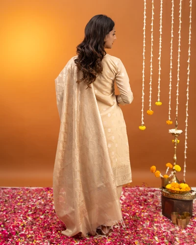 Golden Beige Banaras Suit Set with Dupatta