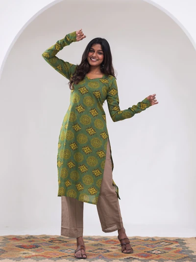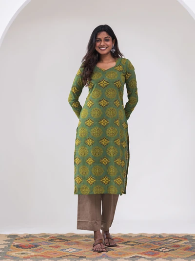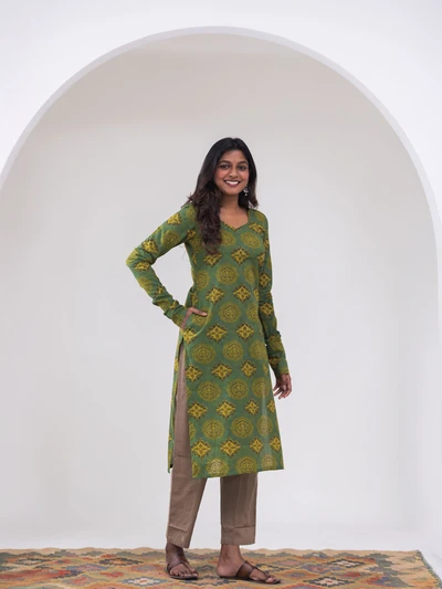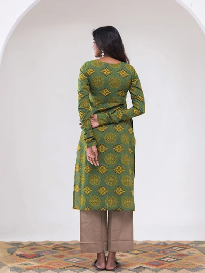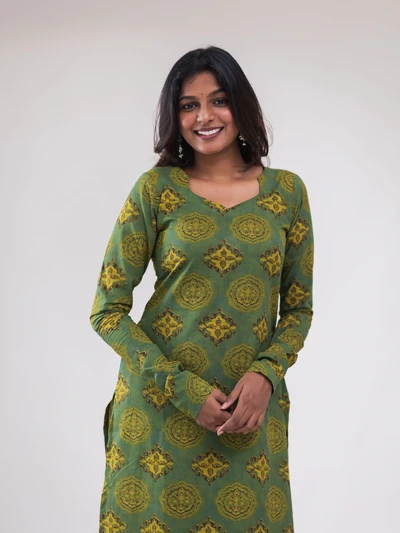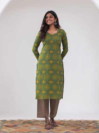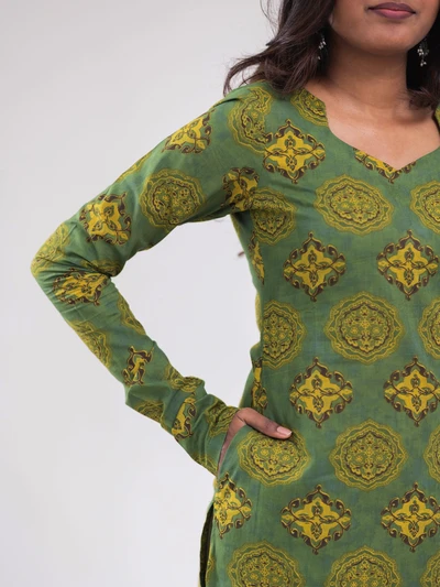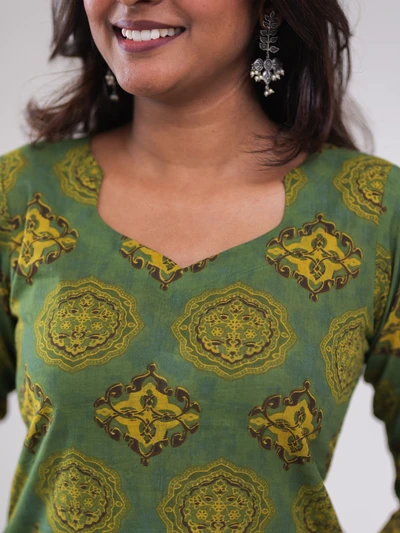 Green Ajrak Motif Printed Kurta