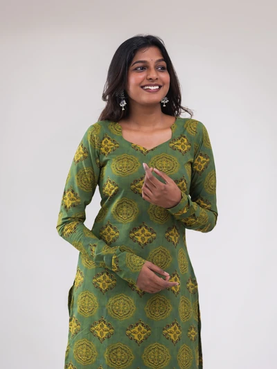 Green Ajrak Cotton Kurta