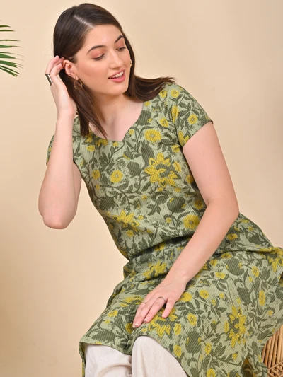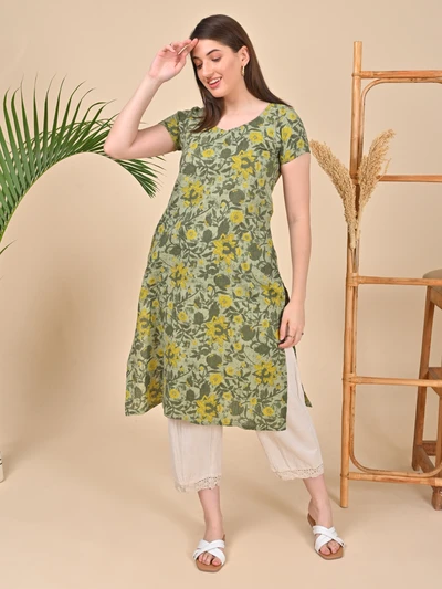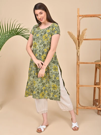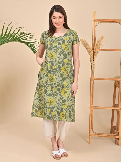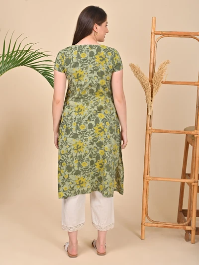 Green Floral A-Line Kurta