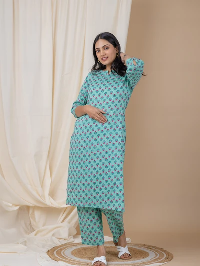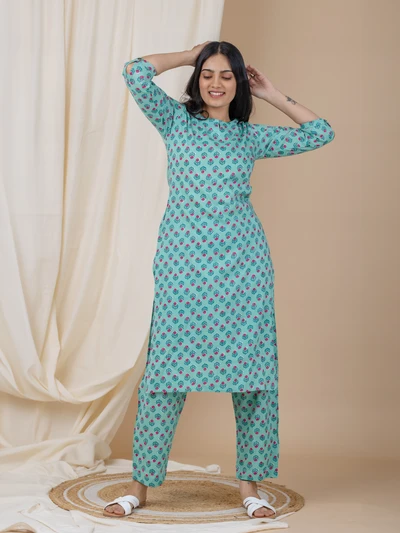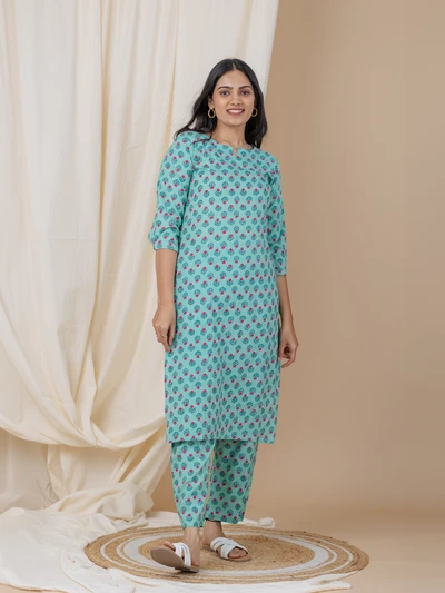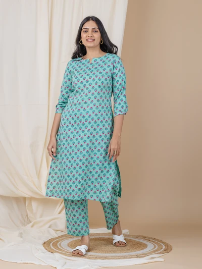 Blue Mangalgiri Handloom Cotton Kurta Set with Dupatta