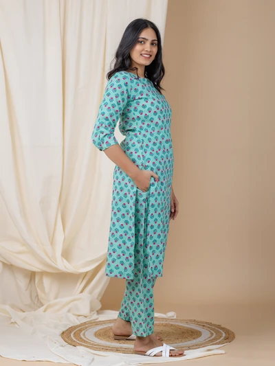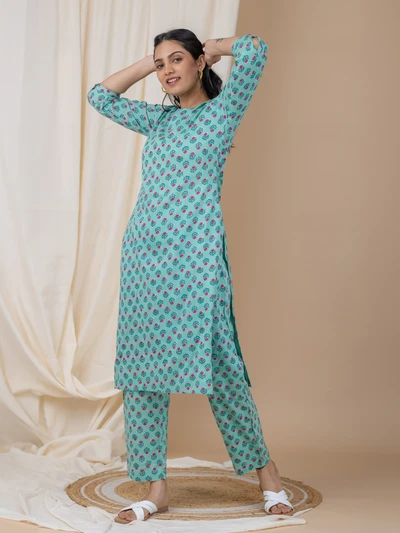 Green Mangalgiri Handloom Cotton Kurta Set with Dupatta