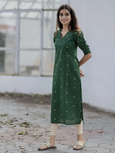 Green Ajrak Cotton Kurta