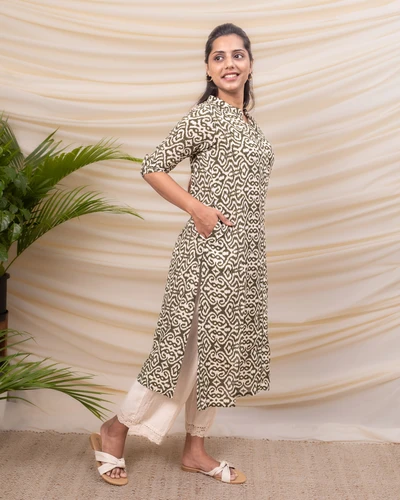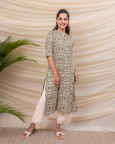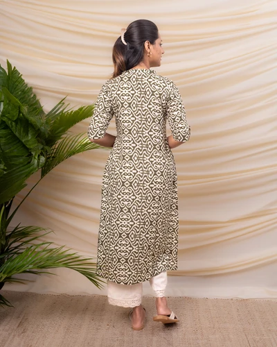 Green and White Abstract Printed Kurta