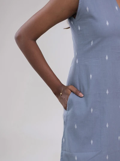 Blue Polka Dot With Stripes Handloom Kurta