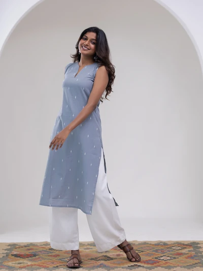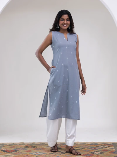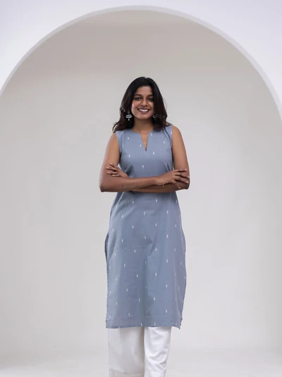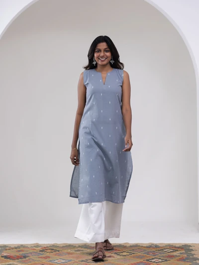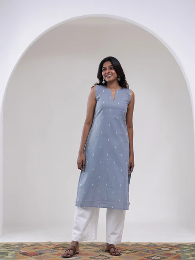 Grey Diamond Weave Kurta