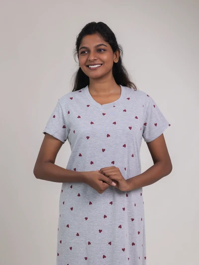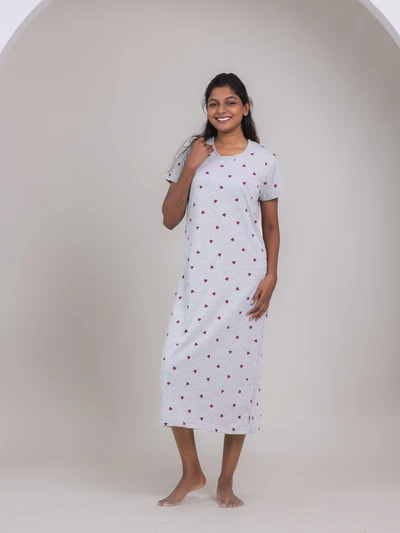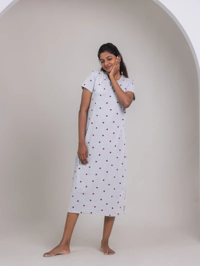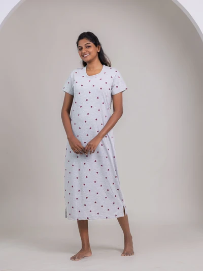 Cream Leafy Leaf - Cotton Maternity Lounge Dress