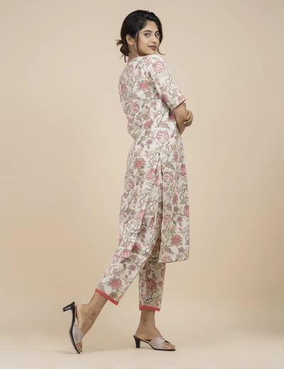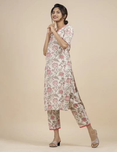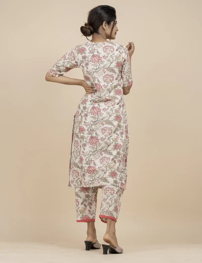 Half White Floral Kurta with Trousers