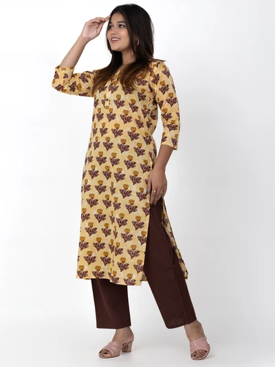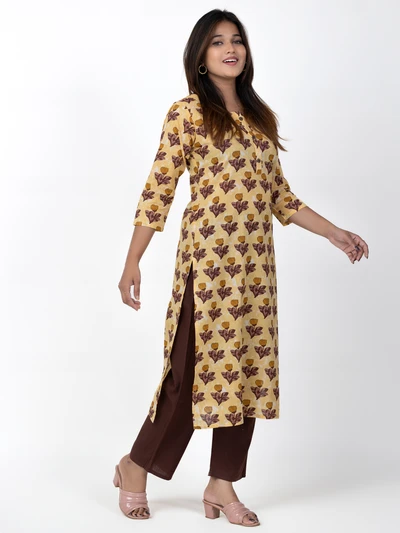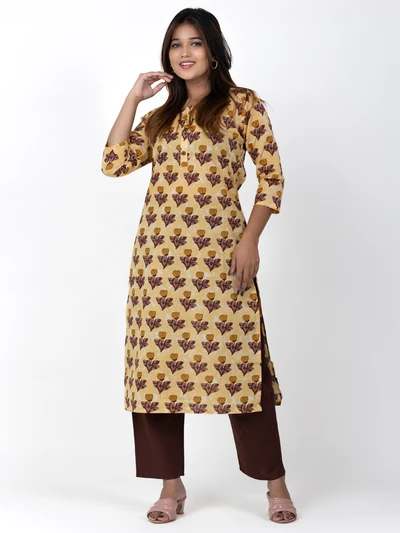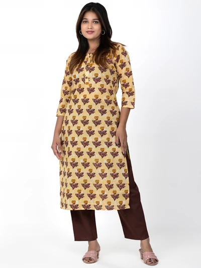 Beige Mangalgiri Handloom Cotton Kurta Set with Dupatta