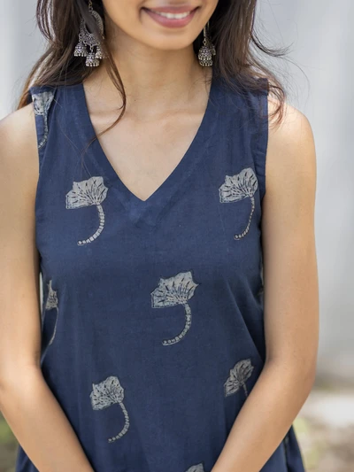 Indigo Block Sleeveless Kurta