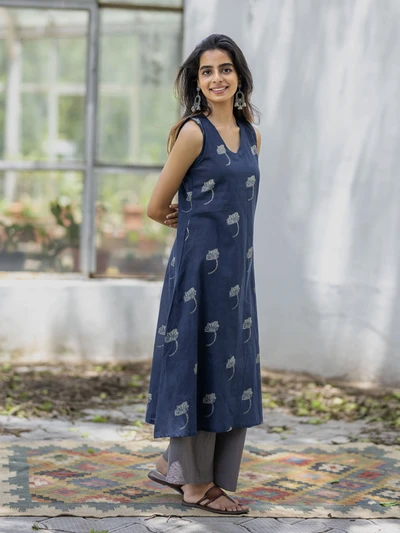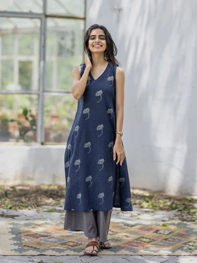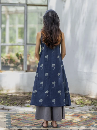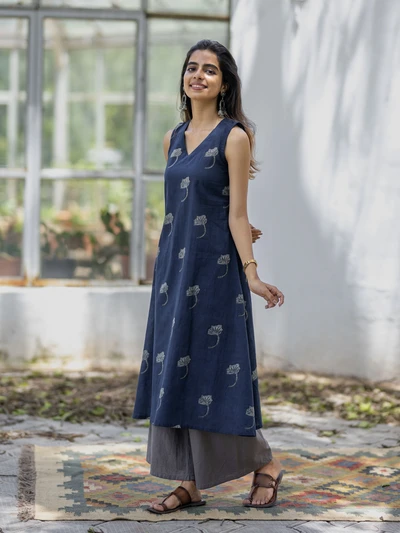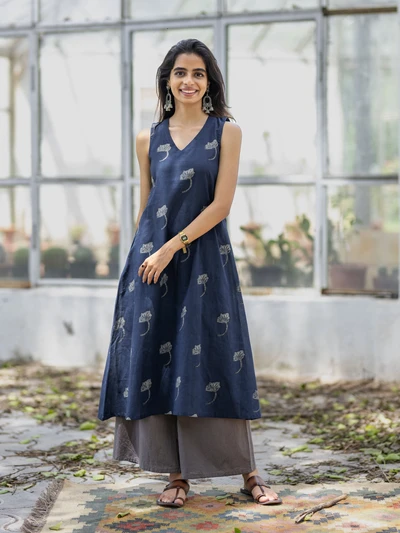 Handblock Indigo Floral Cotton Kurta